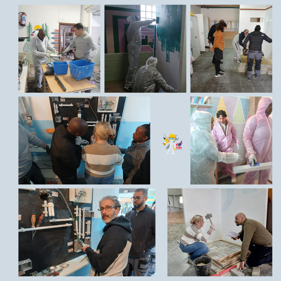 🧱Les habitués des ordinateurs ont ainsi pu découvrir les métiers de la construction (peinture, enduisage, électricité, pavage).